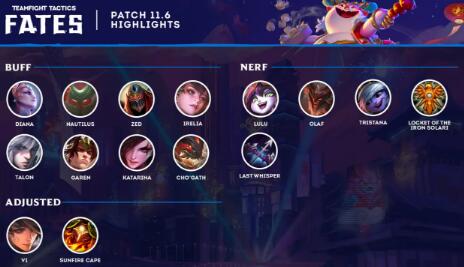 云顶之弈11.6版本装备及英雄调整一览英雄调整:
