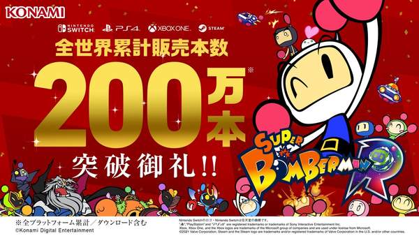 《超级炸弹人R》是一款动作益智类游戏,延续系列基本玩法。今日科乐美官方宣布本作的全球销量已经突破了200万大关,他们将在未来举办纪念活动。