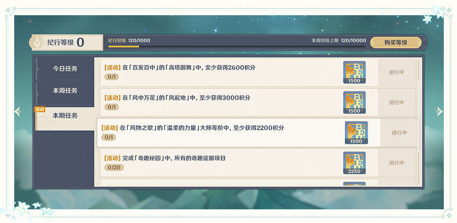 「风花纪行」中也增加了对应的活动任务,完成后可领取纪行经验。