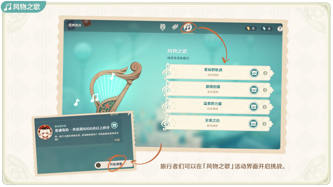 玩家们可以通过「风物之歌」挑战自己的演奏技巧。