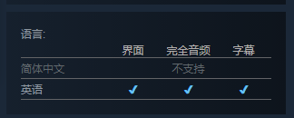 我们可以在游戏的steam页面中发现这款游戏仅支持英文,并没有中文。