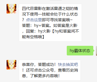 答题格式:hy+答案。如答案是火影忍者,回复:hy火影忍者。hy和答案间不能有空格哦!