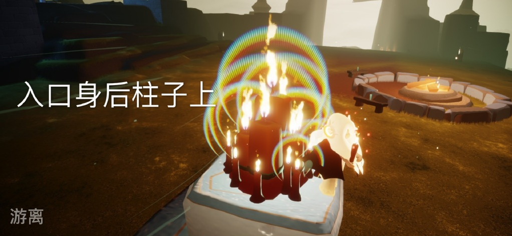 1、第一根大蜡烛在墓土入口身后柱子上,玩家进入地图就能看见;