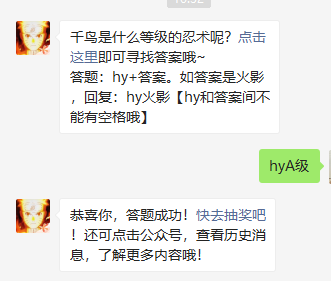 答题格式:hy+答案。如答案是火影忍者,回复:hy火影忍者。hy和答案间不能有空格哦!