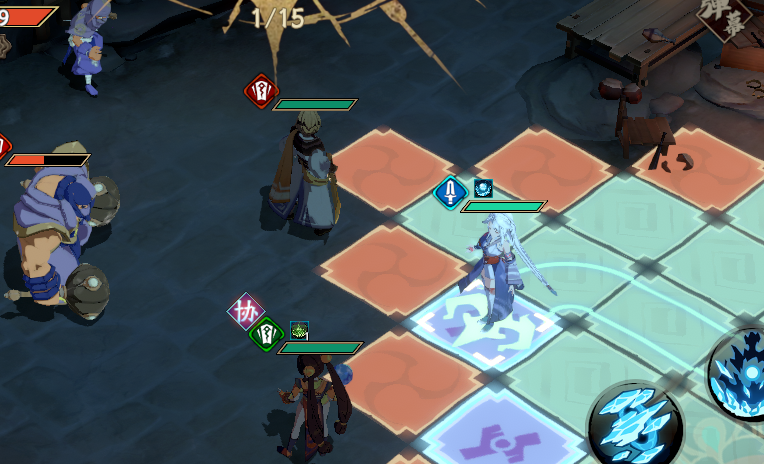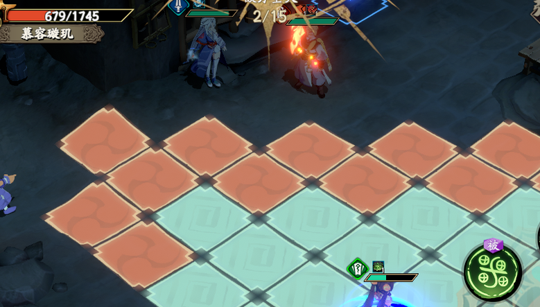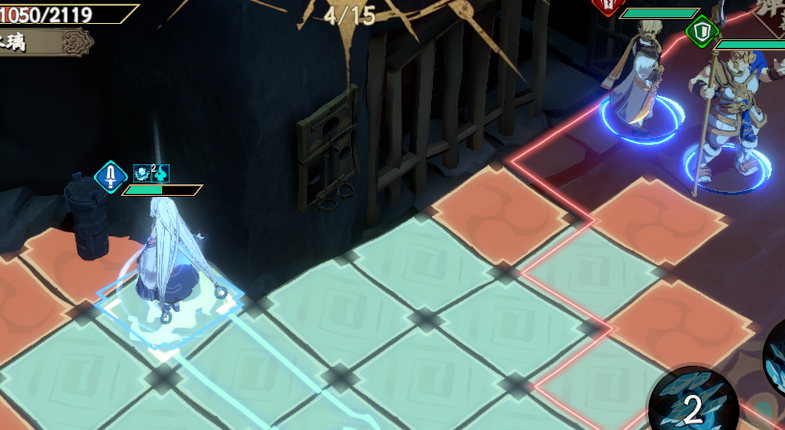 第二回合,冰璃飞刺打2个怪,然后连斩把弓箭杀了,夏侯到图中位置击杀刺客,然后璇玑清理面前的怪,我由于反击暴击了,怪已经死亡,璇玑往右边走