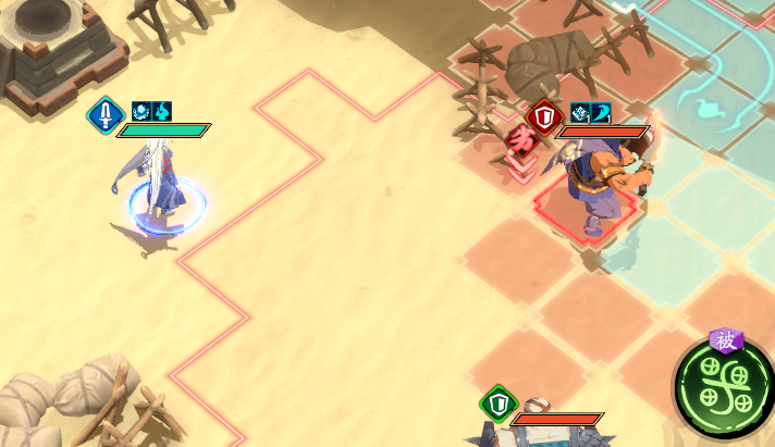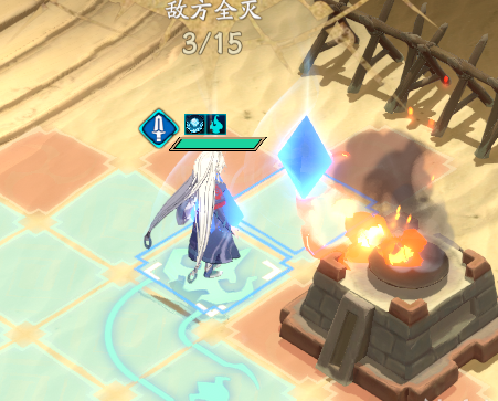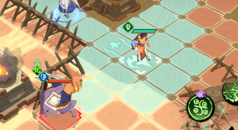 第一回合用飞斩+璇玑技能杀怪,注意要先用飞刺,而璇玑只能走到这个位置