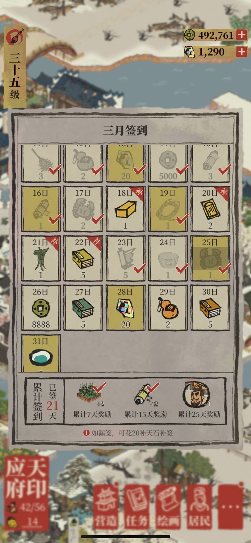 玩家在3月份的每日签到中,累计签到25天即可免费获得闲人嬴政。