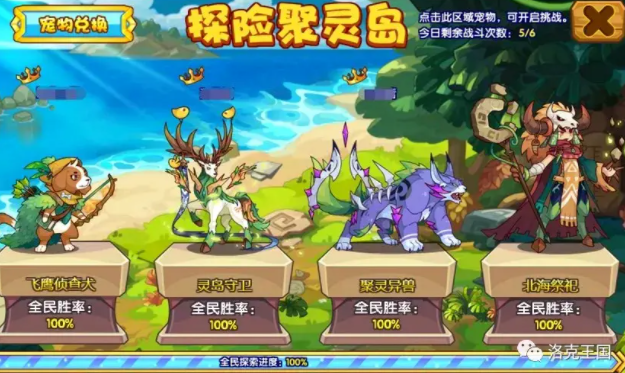 当前区域全民探索进度满100%且每个宠物的战斗胜利人数满足条件,再次挑战当前宠物,可随机获取宠物碎片,用于兑换此区域专属的4只宠物,兑换次数不限制。