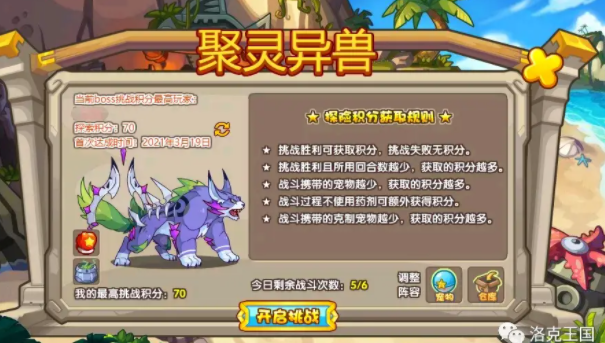 5)战斗携带的克制宠物越少,获取的积分越多。