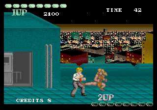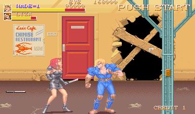 跟风模仿快打旋风的经典街机过关游戏(暴力风暴),当时很受欢迎的街机过关游戏。这游戏一币通关后敌人也加强了不少。