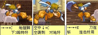 可爱的角色吧,宝宝居然是个小猫.....该女技能极好,看招数应该属于刺客系列人物,小刀用的非常好.升龙斩空中后有2择:1是按L1出空中3散华连击,敌人快落地时候用下+拳出对地技能连打.2是轻拳连打,落地后在敌人浮空状态时继续追加升龙斩!!