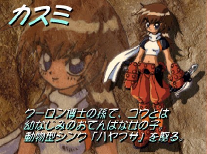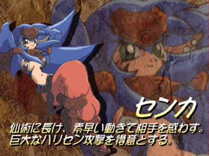 没想到这个游戏居然是眼睛公司出品的,呵呵.如果放到现在,大家可能会说是山寨守护英雄了.确实如此,本游戏无论是系统,还是动作,人物等,到处都有着守护英雄的影子.不过并不全是无聊的模仿,他也弄出了点新意,比如隐藏技能的释放什么的.还有本作的手感丝毫不差于守护系列.打斗感很热血,搓招的成就感很满意.相对于守护的古代英雄主角,本作原创了比较有现代感的正太,御姐,LOLI.大叔类主角.可以说是满足了各种人的愿望.强大的隐藏人物也各据特色...总体来说呢,本作在PS的动作过关类游戏中,是不可多得的精品大作吧!!