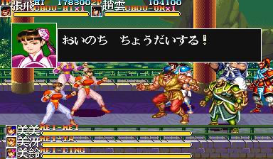 CAPCOM在92年出品的经典街机动作过关游戏(三国志2:赤壁之战),采用了CAPCOM自己当时研制的高性能CPS1基板,在处理巨大的人物和色彩艳丽的背景方面都良好的表现。这游戏极受街机玩家欢迎,就不用多介绍了。