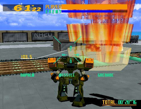 第一阶段:开始时Tangram不会受到任何伤害,玩者可用Dash攻击避开环状激光弹,当看到Tangram发生爆炸并散射出碎片时,这表示Tangram的中心(一个眼状的部分)即将显现,这时玩者可以像攻击Bradtos一样,瞄准中心立即发射一至两道激光炮,然后立再以Dash攻击避开集束激光,Tangram然后会发射一次极太激光,玩者千万不能被它击中,否则便会受严重伤害。极太激光后,Temjin可立即反回原位瞄准Tangram中心,再发射两次激光,如是者三会合左右便能打破Tangram。