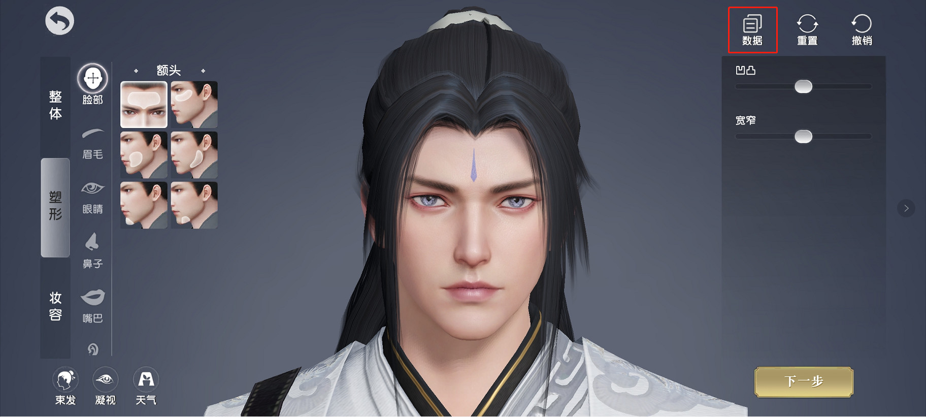 1、首先打开游戏,捏脸捏好之后,点击右上角的数据;