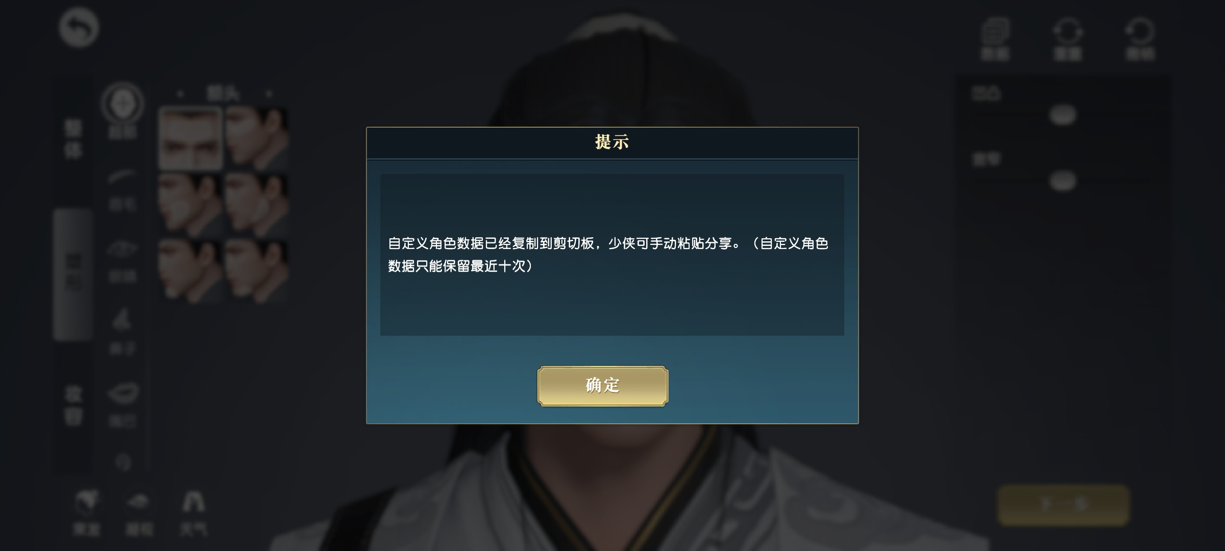 导入也很简答,在上面导出教程的第二部会有导入按钮,点击之后复制别人的捏脸数据粘贴进去就可以了