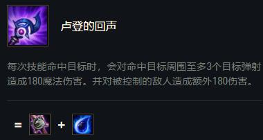 卢登的回声可以使技能在每次命中目标后对周围的三名敌人造成180点伤害,并对被控制的敌人额外造成180的伤害。这个装备的效果简直和火男的技能是天作之合,并且火男自带龙魂加魔法师的羁绊,对法术伤害增幅很大龙魂还能增加攻速快速施放技能,再加上卢登本身就是前期很强力的装备而火男又是1费卡,这就让赌火男的阵容体系有了可行性。