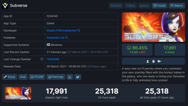 马头社重磅大作《Subverse》在本周五(3月26日)正式发售,受到了众多“LSP”玩家的欢迎,据马头社官推称,本作于今日凌晨一经推出,便迅速登上全球热销商品榜首位。而根据Steam Database数据显示,《Subverse》Steam在线玩家首日峰值超过25000人,游戏总体评价特别好评,好评率高达90%。
