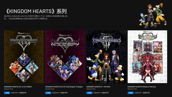 在今年2月,Square Enix宣布旗下《王国之心》系列的多款作品将于3月30日登陆Epic平台。随着期限时间已到,《王国之心 1 5 & 2 5 高清混合版》、《王国之心高清 2 8 终章序幕》等作在Epic平台正式开售。
