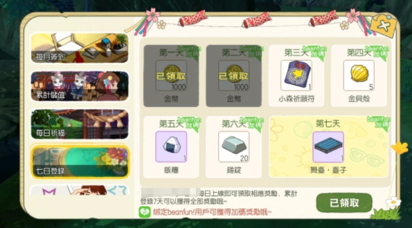 2、每日祈福,玩家可以自行选择祈福道具,变成金贝壳,第二天来领即可。