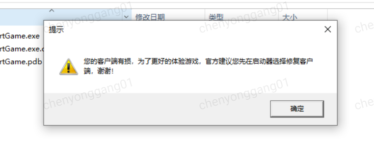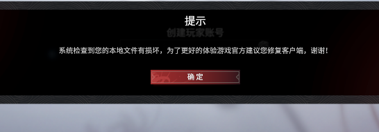 当游戏文件出现缺少、损坏时,您可能会看到如下提示:
