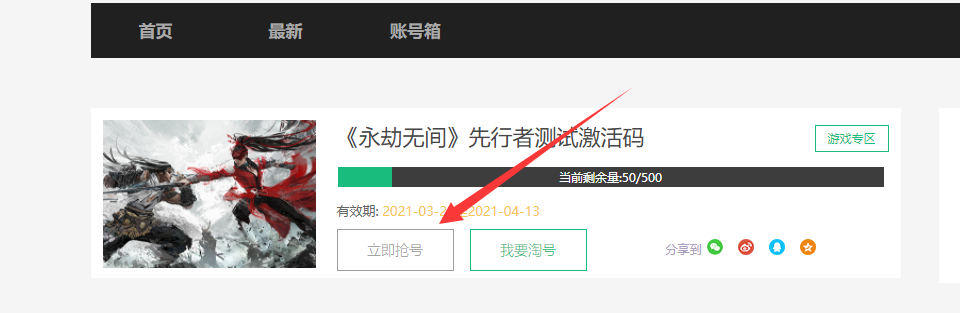 首先点击上方的领取地址进入领取页面,进入后点击下图的立即抢号。
