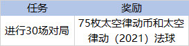 购期限守卫赠10个太空律动(2021)法球赠1个额外的太空律动(2021)法球、160个太空律动(2021)币