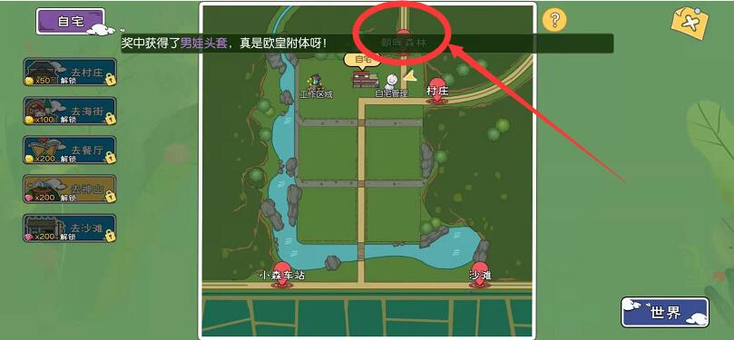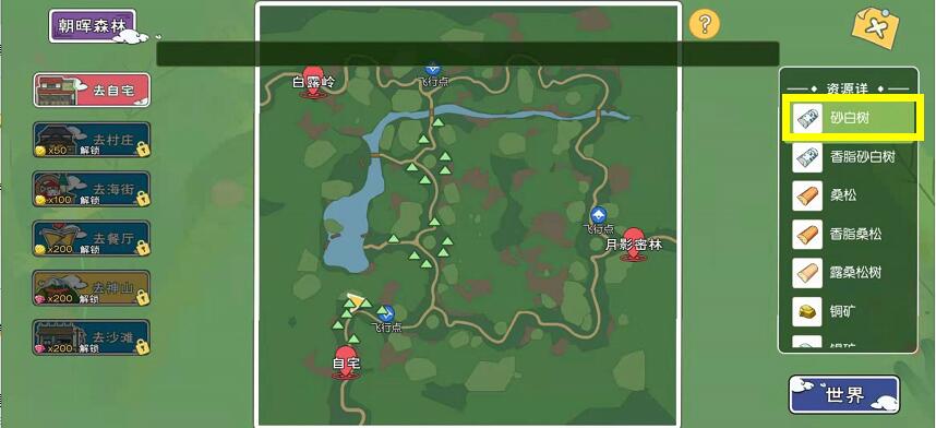 3、到达森林之后,点击右上角打开地图,点击砂白树,即可看到地图的标记;