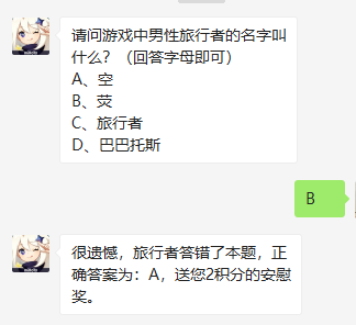 《原神》游戏中有好几个旅行者,每个旅行者的属性个技能都不一样,这也是玩家的初始角色之一,今天的微信每日一题是:请问游戏中男性旅行者的名字叫什么?下面小编就给大家带来《原神》2021年4月9日微信每日一题答案,一起来看看吧!