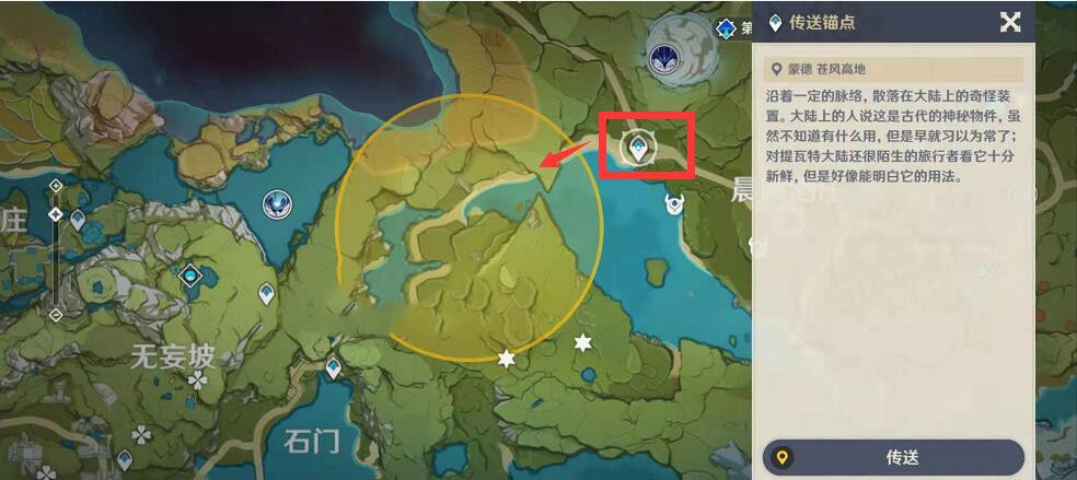 2、然后点击传送,传送到下图所示的位置;