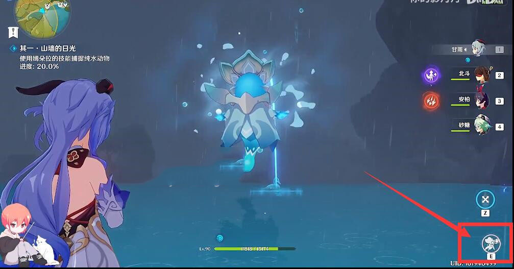 3、电脑玩家先点击右下角z,让嫣朵拉蓄力两秒;
