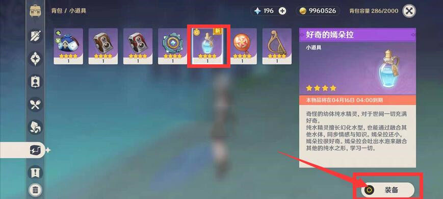 1、玩家获得好奇的嫣朵拉之后,要在背包中装备上;