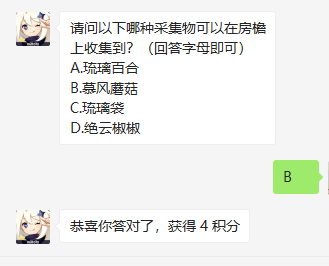 《原神》游戏中有很多的采集物,每种采集物分布的地点不同,今天的微信每日一题是:请问以下哪种采集物可以在房檐上收集到?下面小编就给大家带来《原神》2021年4月12日微信每日一题答案,一起来看看吧!