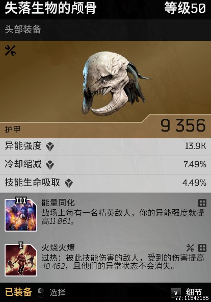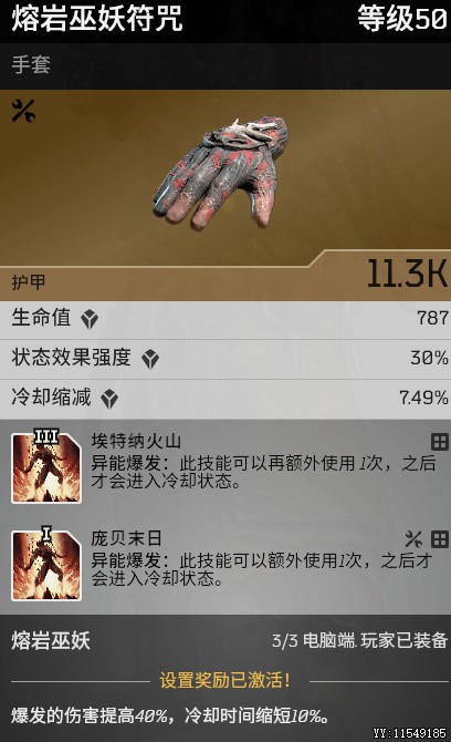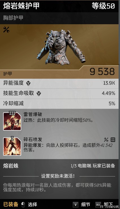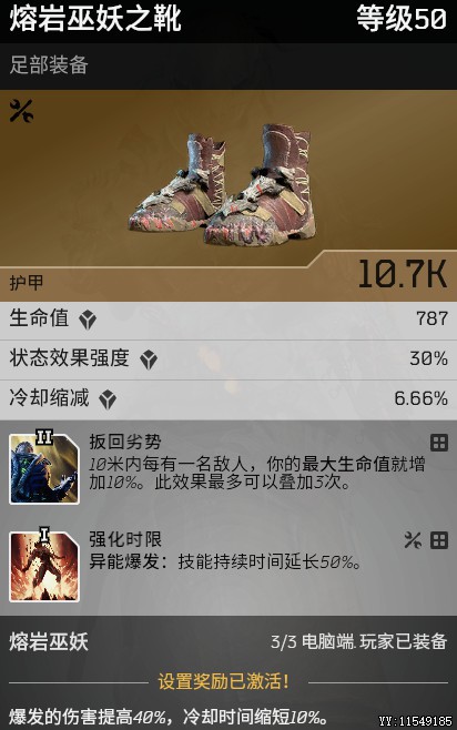 熔岩3件套,其中裤子没有冷却词条,其他4件装备都选冷却,最大限度降低异能爆发的cd。
