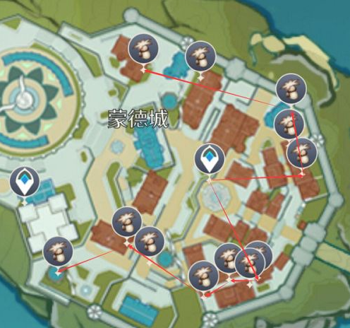 1、蒙德城,共计25个慕风蘑菇,最优路线可获得20个,建议带上七七,会有小手显示,更好采集;