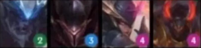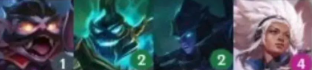 从左到右英雄:克烈(1),赫卡里姆(2),瑟庄妮(2),芮尔(4)