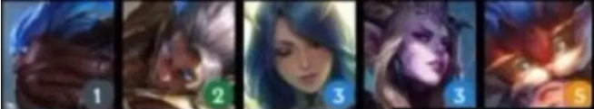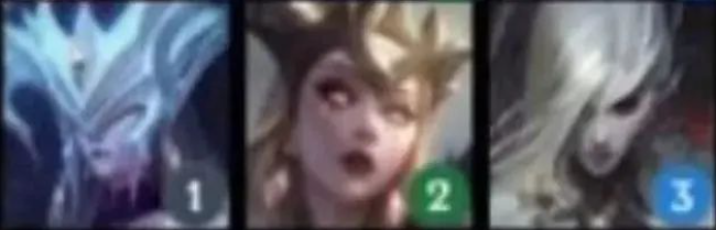 从左到右英雄为:丽桑卓(1)、乐芙兰(2)、莫甘娜(3)