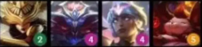 从左到右英雄:辛德拉(2)、艾翁(4)、卡尔玛(4)、提莫(5)