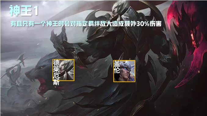 如果你仅拥有一名[神王]英雄时,他会对指定羁绊的敌人造成30%额外伤害。