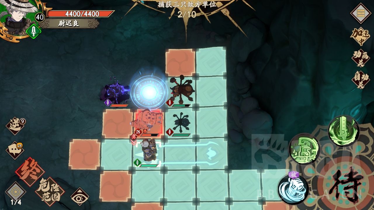 第一关:自动,等ai把怪杀完走进终点即可