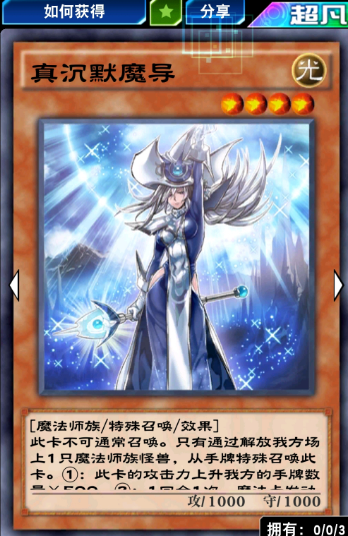 先手出光头(加上检索卡等于有六张),召真沉默,光头检索审神者或者使徒。这样过了后我们真沉默的攻击力有2500点。对面回合如果硬跟你换的话他那个炸牌效果炸不到我们的LV8。如果对面是装备了同盟怪兽的情况下和你换,你LV8和对面的坦克就会都在场,到你的回合在思考对策。
