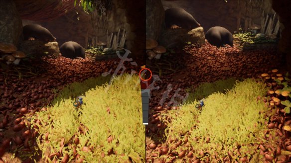 鼹鼠洞穴关卡里,这里注意不要吵醒鼹鼠,要走绿色的草地红色的落叶会发出噪音。