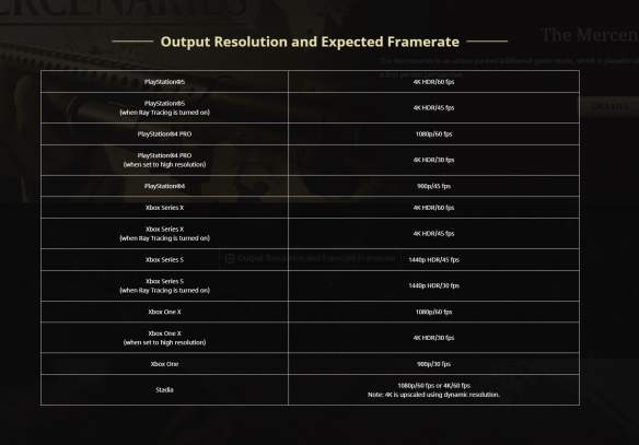 在今日凌晨的《生化危机》直播活动中,capcom正式宣布将会推出游戏的试玩版本,同时还公布了各平台的的帧率和分辨率信息,根据这份表单显示,本作的帧率最高可达到4K HDR/60 fps的水平,而正常情况下,PS4 Pro与Xbox One X 即可稳定达到1080p/60 fps的水准。