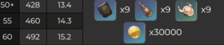 50突破60级:高塔孤王的残垣*9+黑铜号角*9+污秽的面具*9+3万摩拉