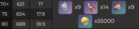 60突破70级:高塔孤王的断片*5+黑铜号角*18+污秽的面具*14+4.5万摩拉