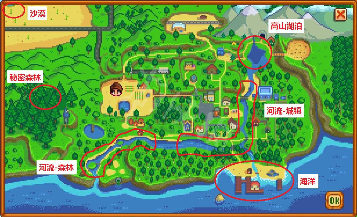 高山湖泊。(下图为星露谷物语地图,高山湖泊即右上角矿洞前湖泊)。