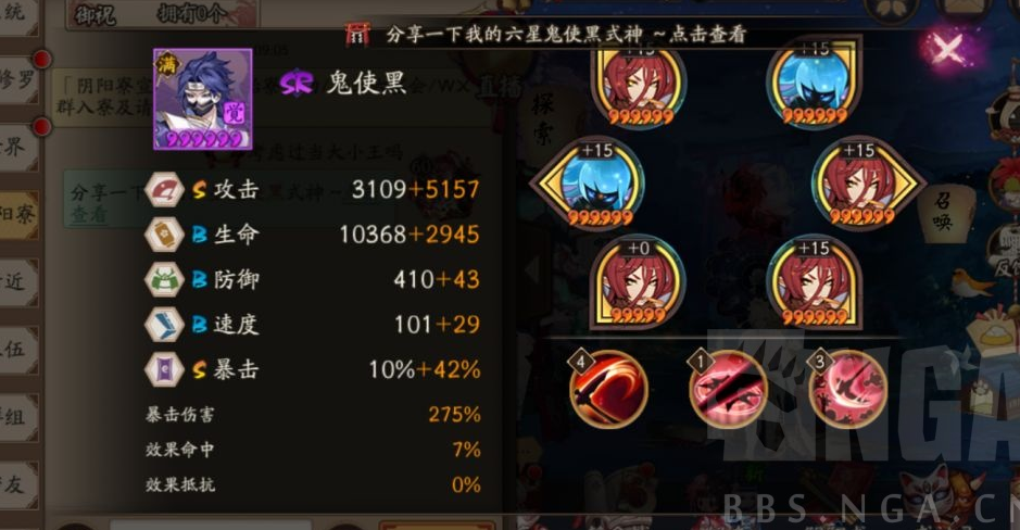 鬼使黑面板参考,注意是老实人阴摩罗而且大招3级