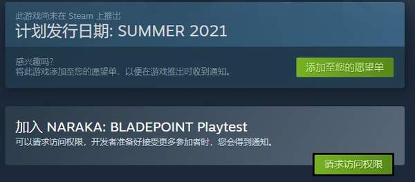2,点击下方【NARAKA:BLADEPOINT PLAYTEST】的绿色按钮【请求访问权限】