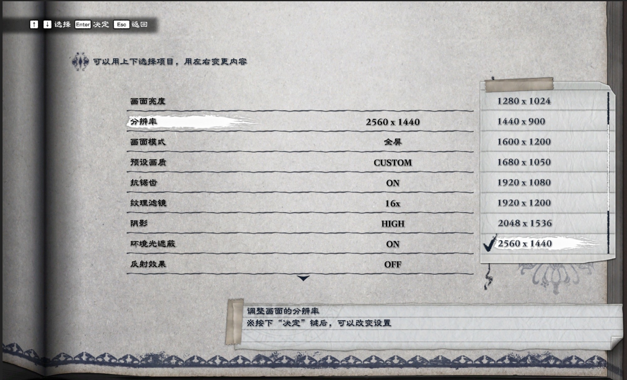 然后进游戏选择16:9的分辨率。比如1920x1080或者2560x1440,游戏就会强制被强制显示成21:9的画面。