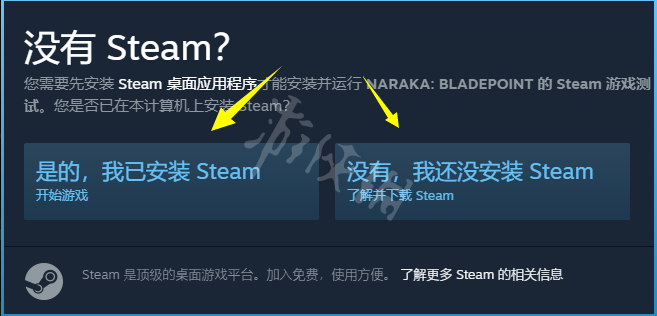 有steam的点左边直接开启下载,没有的点右边安装steam。